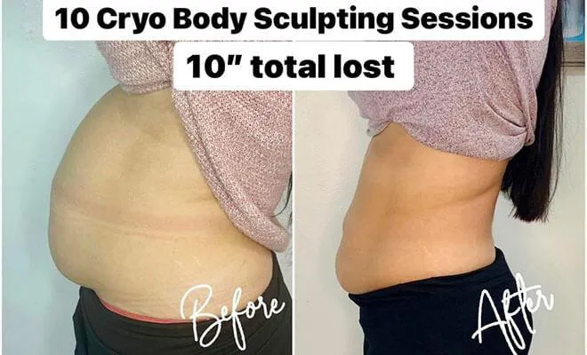 You can see results as quickly as your first session! Some can lose UP TO 1 inch with their first Cryo Slimming Body Contouring treatment..Drink plenty of water before and after to help your body flush the fat.
